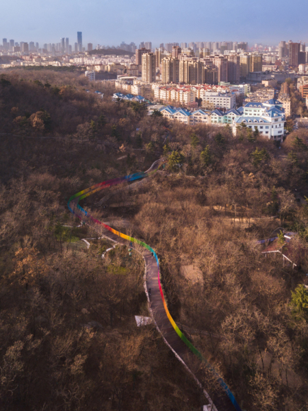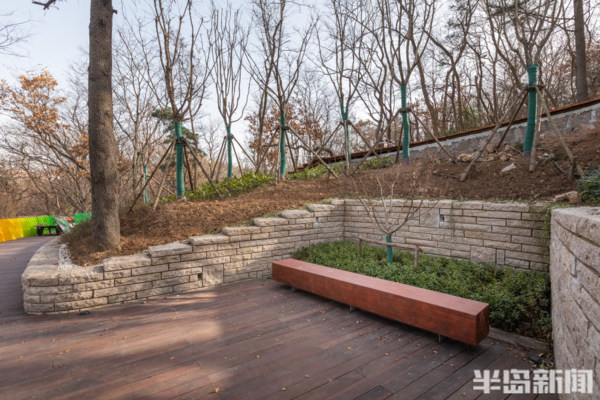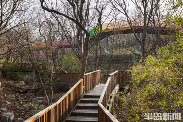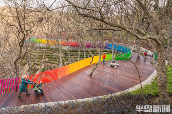 青島櫸林公園修建於1984年,曾是廣受青島人喜愛的一處休閒之地。母子像雕塑、人工湖以及滿園的櫸樹陪伴了許多青島人的時光。新近增加的一條長為630米的彩虹木棧道為這個美麗的山林公園增添了新的色彩與活力。