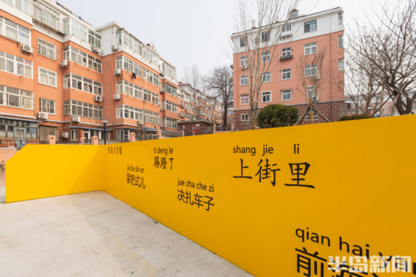 青島市北區鞍山二路與南寧路路口的口袋公園,最大的特色是有“青島話方言牆”。