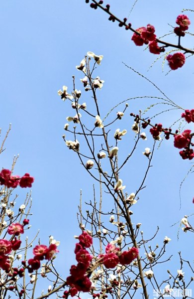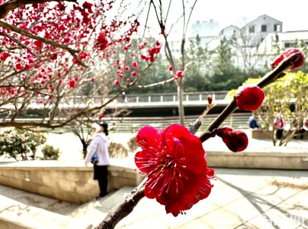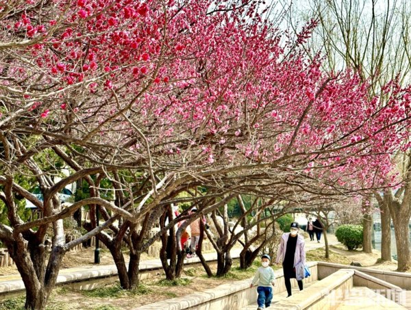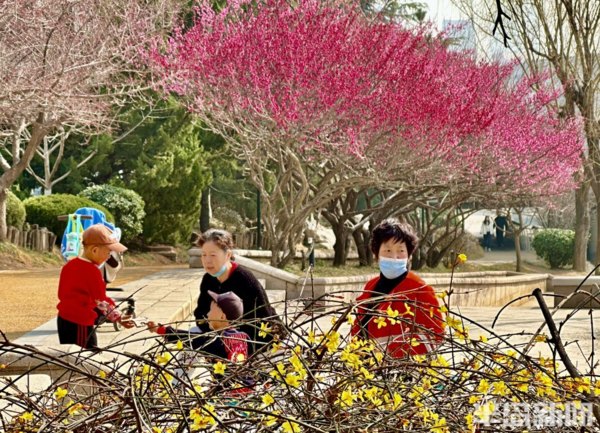 青島李滄區大村河沿岸的梅花、迎春花、玉蘭花等盛放,好一番春意盎然,生機勃勃的景象。