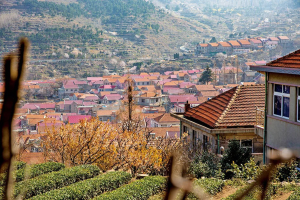 青山村是青島嶗山中歷史最為悠久的一座漁村,距今已有600餘年的歷史。這裡的房屋臨海依山而建,青山之下紅瓦粉牆的樓房和茅草石屋次第呼應,從遠處望去一抹抹艷麗的紅色彰顯著這座古老漁村的無限生機。當地村民打漁、種茶,保持著接近原生態的生活。