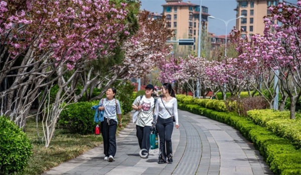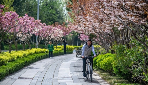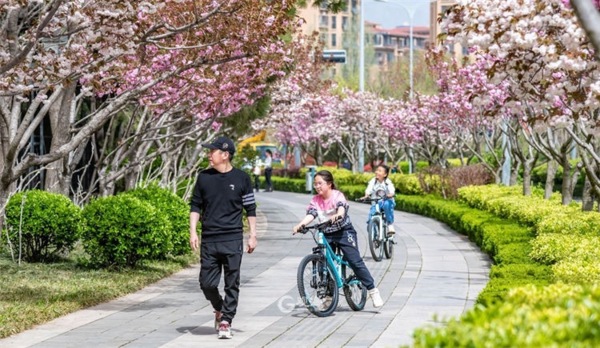 在青島李村河衡水路,有一條3公里長的健身步道,一棵棵櫻花樹花團錦簇,成為櫻花大道。