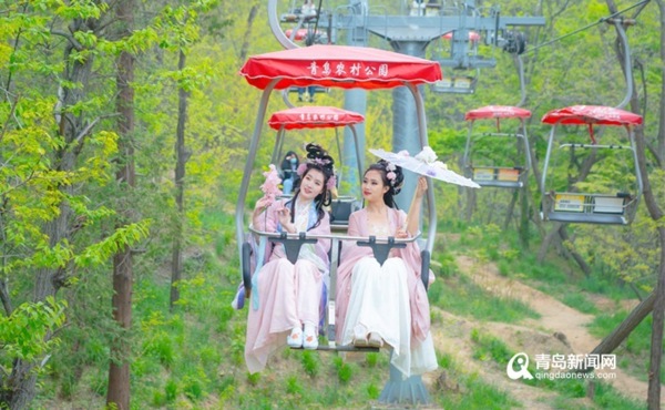 十二花仙女精彩亮相,一場中國古裝盛宴!中國第三屆太平山索道空中漢服秀在風景如畫的青島太平山索道景區啟動