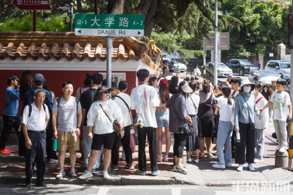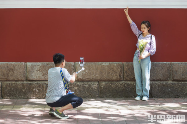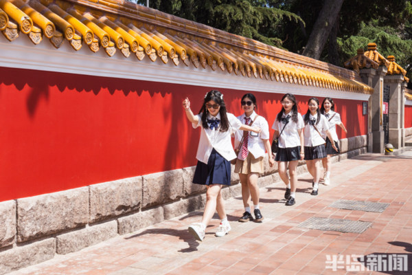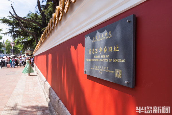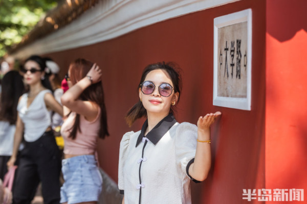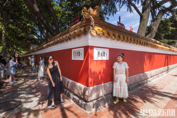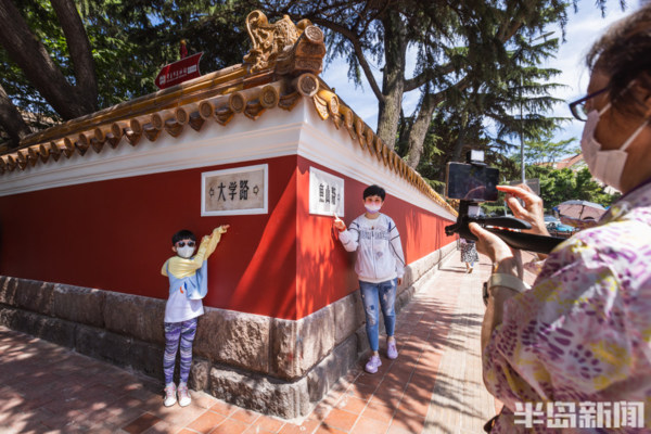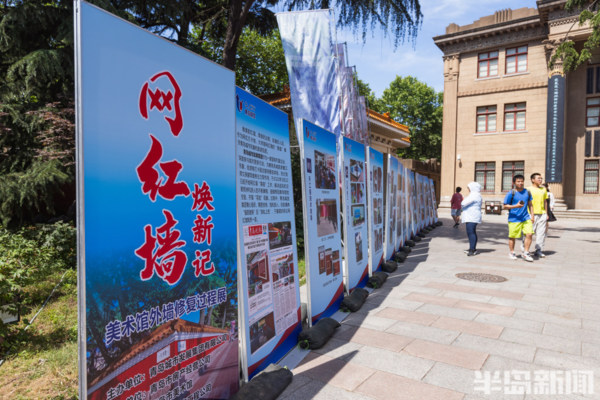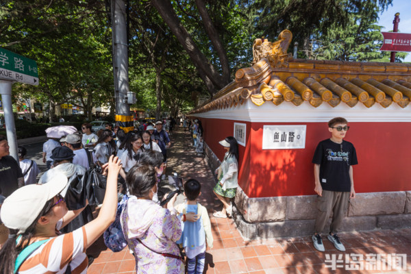 大學路與魚山路交界處的網紅牆前站滿了前來拍照的遊客們。經過前期的施工修繕,備受遊客喜愛的青島這個網紅牆以嶄新的面貌呈現在人們眼前。