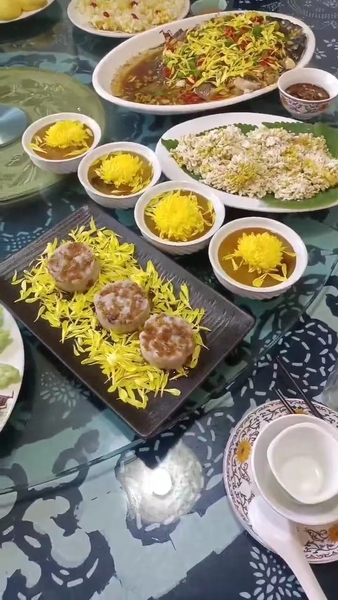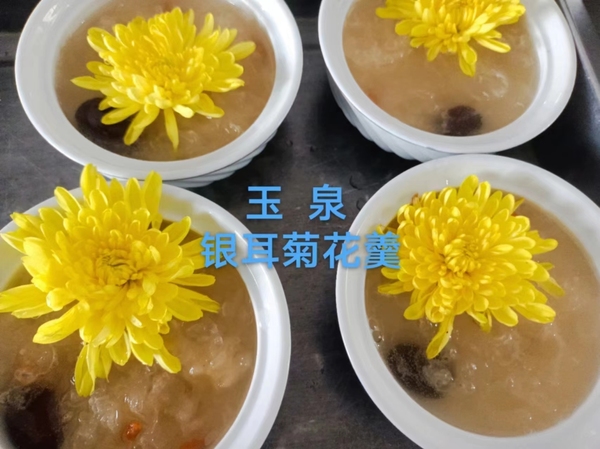 桂菊山藥、銀耳菊花羹、菊花餃子、秋葵菊花、菊花餅、涼拌菊花、菊花丸子湯……各種你想得到、想不到的吃法,青島嶗山的菊花宴裡都有。 經過四、五年的探索,青島嶗山的菊花宴已有20多個菜餚。 已