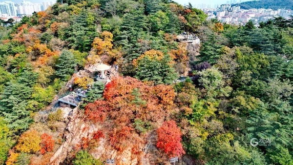 在青島中山公園,降溫讓各種樹葉的顏色更深更艷