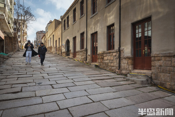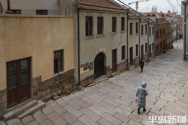 石板路是黄岛路的标志,老青岛人又称其为“一步半”