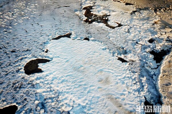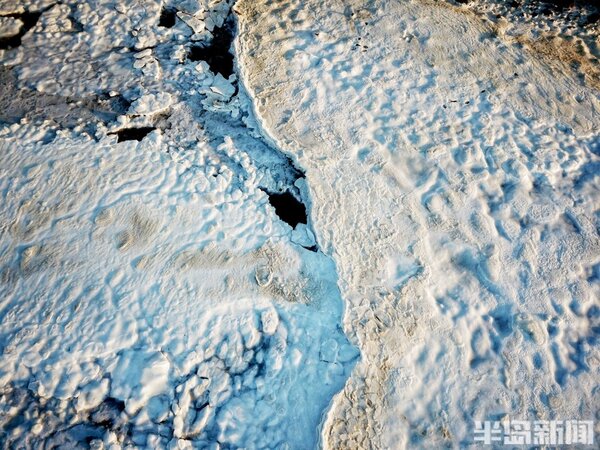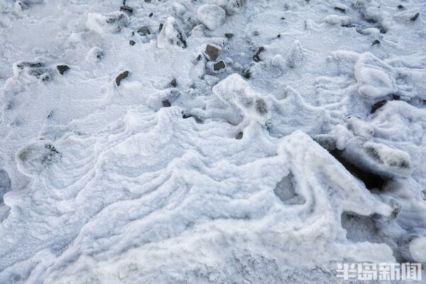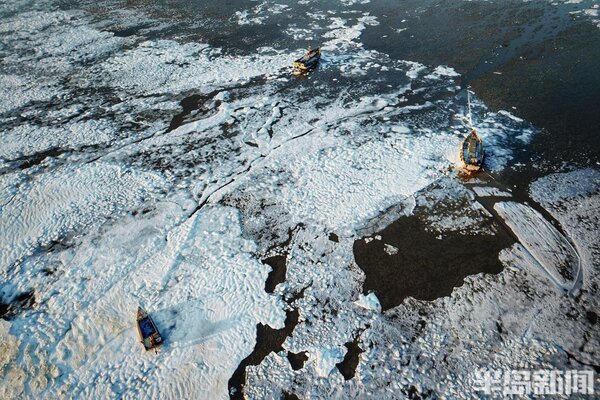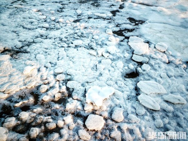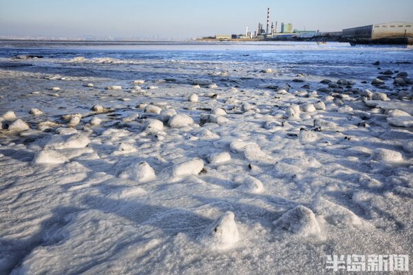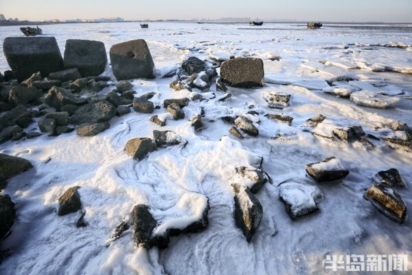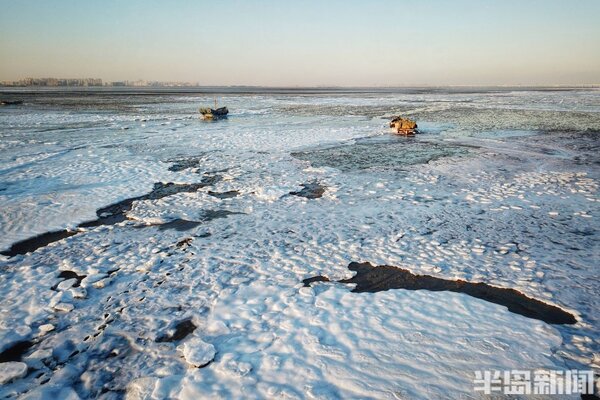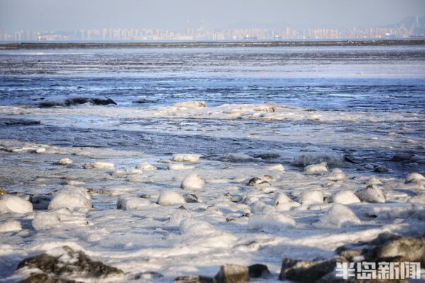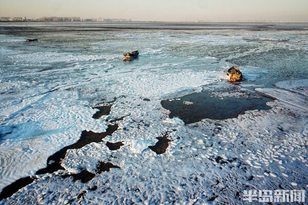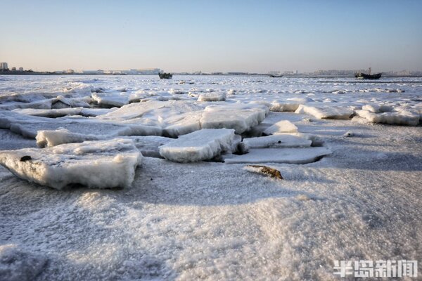 海冰猶如繪製在膠州灣的一幅幅風景畫,蔚為壯觀。