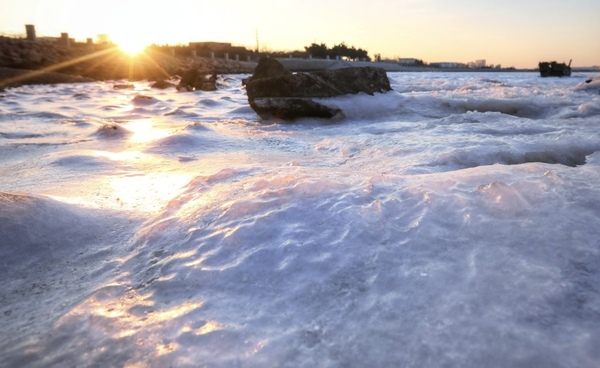 似夢似幻 嚴寒天氣成就青島前海沿另一番夕陽美景
