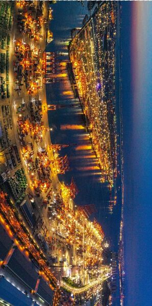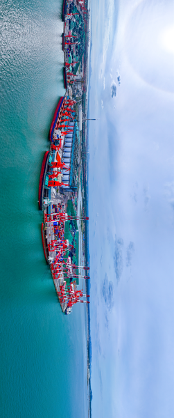 当汽笛声与朝阳共谱晨光序曲,山东港口青岛港展开一幅幅精彩画卷。