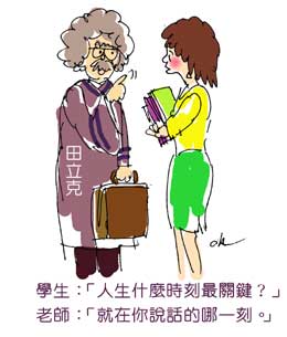 田立克還說過這樣的一句話﹕“不要企求什麼,不要從事什麼,不要打算什麼,只要接受你已經被接納了的事實”。同樣也是存在主義味道十足。