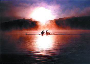 晚日沉浮雲霧中
