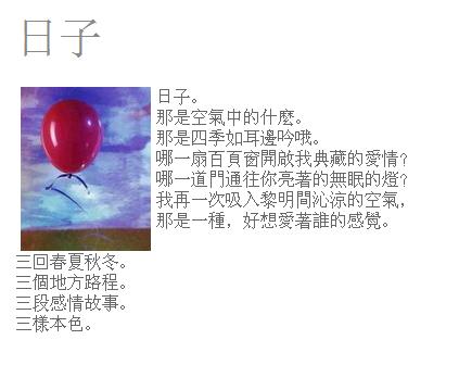日後,我開始耗著時間,指間敲詩敲書信,朝朝暮暮。