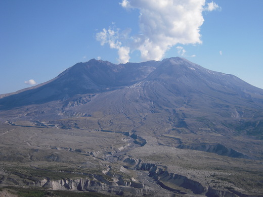 Mount St. Helens雖是活火山,但這張相片中火山口的白煙卻不是火山冒煙,純粹是恰巧有雲聚集在上。