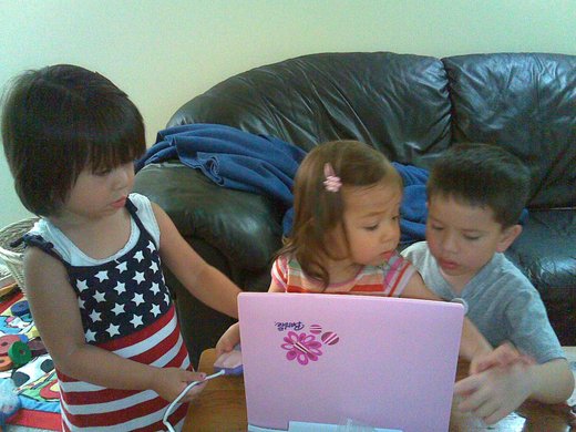 我們育有一男一女,他們也各自有一男一女。兒子一家住在離我們有五個半鐘頭車距的一個美國小城。每年大概可以見上五、六次面,因此,與六歲的孫子伊森和四歲的孫女乃莉的互動沒那麼頻繁,不過,經常通電話的結果使得我們之間沒有”芥蒂”或”生份感”;見了面他們總是衝過來,跟我們擁抱、讓我們疼惜,與我們兩老玩得非常開心。伊森雖然是男生,在多人面前還是會怕羞,尤其當他沒自信的時候。記得去年春天我們去看他們時,剛好媳婦幫他報了名去參加類似棒球、卻更簡單、更適合年紀小的孩子的T-ball 。剛滿五歲的小伊森穿上球衣、帶了球帽,看起來相當英挺。他非常開心,但是輪到該他練習接球、打擊時,他卻裹足不前,任憑威脅利誘,還是無動於衷。大家有些失望,但沒有強迫他。第二天,我約了他到附近的小公園,練習跑、接球和打擊,他玩得滿身大汗,卻建立了信心。現在他是他們球隊的好手,令我也覺得與有榮焉。他最喜歡的玩具是車子和各種工具,平常愛用Lego蓋房子和大樓,也喜歡學大人使用工具去修東補西的。雖然是男生,奕森非常重感情,每次相聚結束要分開時,總是非常不開心,若是他阿媽單獨去看他們、而須搭早班火車回溫哥華時,他也都堅持要早起送阿媽到車站。小小年紀就如此,惹人憐愛。乃莉是女生,愛哭,會撒嬌,喜歡漂亮,也相當有主見,會”保護”哥哥。記得有一次他們兄妹和兩個小表弟妹(女兒的)一起玩時,小表妹愛珊開玩笑地把伊森叫成”cookie monster”,乃莉馬上糾正她說:”Don’t call my brother cookie monster!”我們常笑著說:”這個赤查某(兇女人)將來準不會被欺負。”