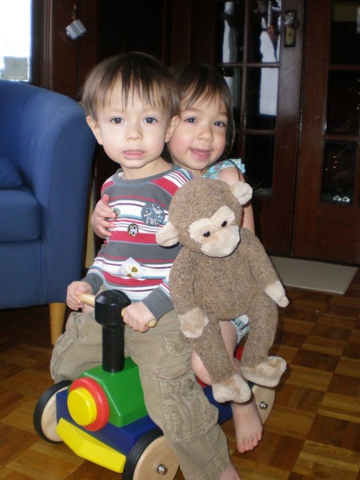 家裏一下多了四個人,頓時熱鬧許多。一清早,有時小傢伙們起得早,就會輕敲我們臥室的門,要來我們床上再賴賴床。不然,就會嚷著肚子餓,要我們給他們弄早點,這些都是我們何樂而不為的事。白天,不只房子裏嘻笑聲、打鬧聲大了,起居室、甚至客廳裏到處都是玩具、兒童書籍。更重要的,愛珊、凱智這兩個討人喜歡的小傢伙,不時都會過來撒撒嬌、要我們抱抱,或者要我們跟他們玩、給他們說故事,也與他們一起唱歌,解釋台語童謠的歌詞。兩個姐弟除了原來的”雨夜花”外,又學會了”天黑黑”,現在,愛珊竟然喜歡江蕙唱的”空笑夢”,沒事時,嘴裏常常哼著它(不過,我們沒給她解釋歌詞的意思)。晚上,他們換上睡衣後,常會拿幾本書過來,要我們念給他們聽,然後,才肯上床就寢,結束”忙碌”的一天。我們是比平常忙些,卻忙得心裏很充實。常聽人說:”有祖父母寵愛的孫子是有福的”,但是,我也要說:”有孫子可供他們寵愛的祖父母是有福的”,因為孫子們給我們這些老人帶來生命的氣息,也讓我們知道健康的重要 – 身體好,才有精力寵愛他們啊。