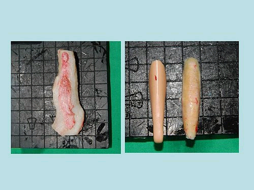 上圖: 這是肋軟骨取下,依照矽膠外型雕刻,雕成一個適合的鼻樑。