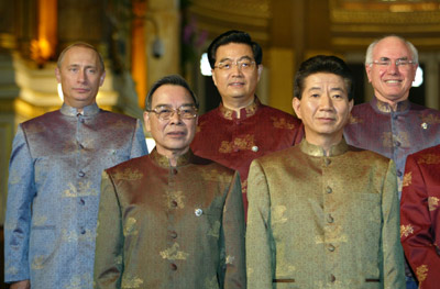 香港1997年歸還大陸,特首董建華及接任之曾蔭權自當年起每年之領袖會議均親自出席,甚至連2003年SARS肆虐期間仍能遠赴曼谷出席,有照片為證,請看翻自APEC網頁的2003年領袖大合照﹝如本文前後﹞,總書記您也在嘛!