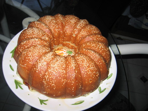 12. Remove plastic and bake in a 350F oven for 40 minutes until golden