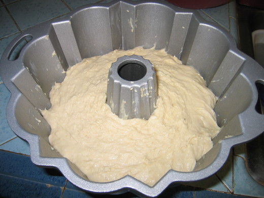 6. Generously grease a 12 cup bunt pan (or 10 inch tube pan) and sprinkle