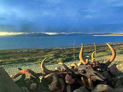 《大藏經,俱舍論》中記載,印度往北過九座大山,有一大雪山,雪山下有四大江水之源……。佛經中說的大雪山就是神山岡仁波切,而四大江水之源指的就是聖湖之母瑪旁雍措。東為馬泉河,南為孔雀河,西為象泉河,北為獅泉河。「瑪旁雍措」--「不可戰勝的碧玉之湖」,藏語裏「瑪旁」就是不敗,無能勝的意思。