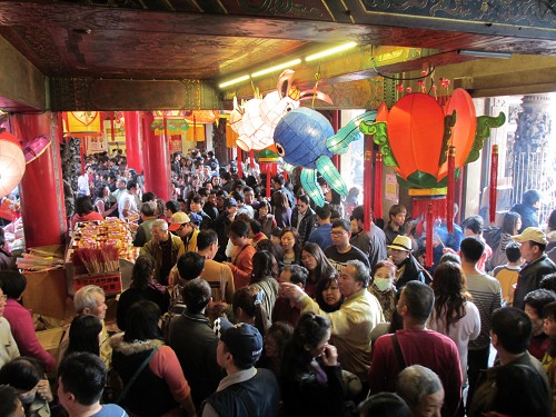 香火鼎盛的鎮瀾宮內,拜拜只能跟著其他信眾的腳步緩緩前進,