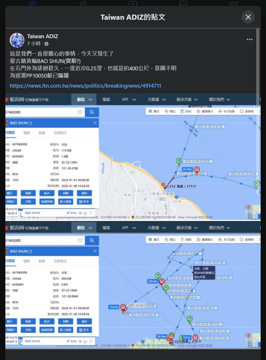 還有其他的中國權宜船,也是常常在台灣的附近海域徘徊。