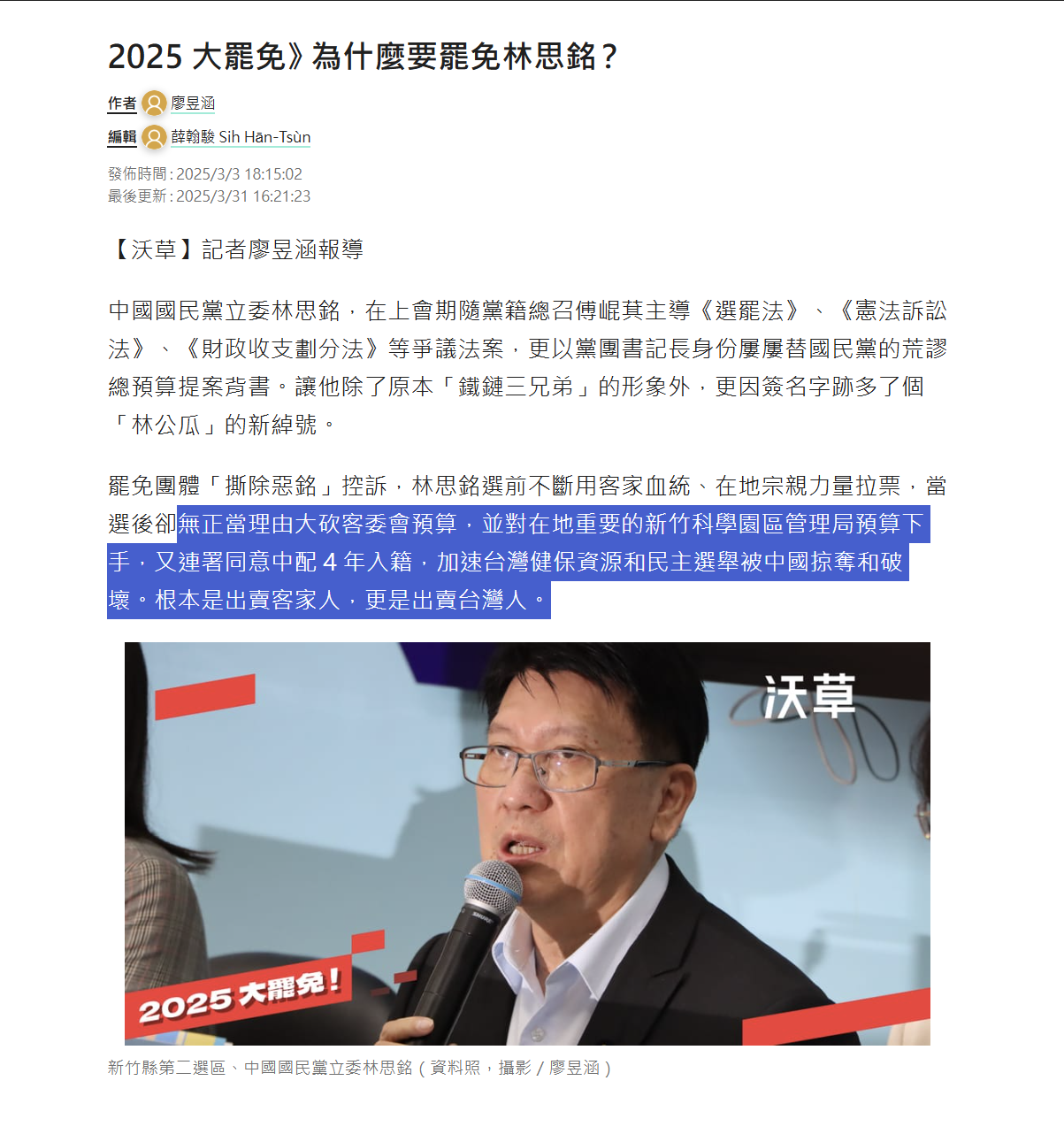 海峽中線:我們優越族群就是可以說謊與造謠,怎樣!