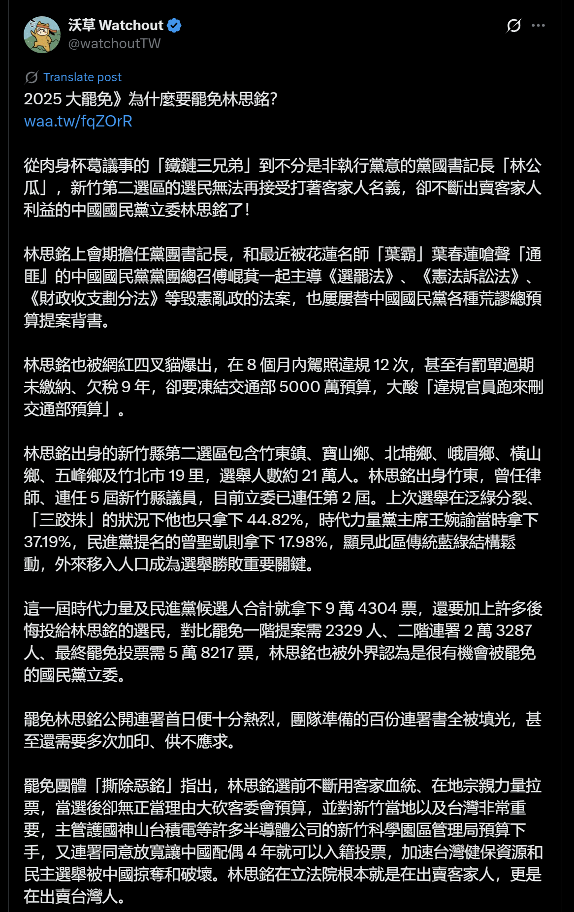 罷免連署書的簽名必須寫得非常工整,而且不准超出格子,然後立委自己的簽名可以簽到九成以上的人都看不出原字是什麼。