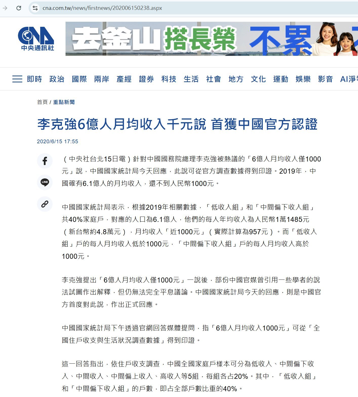 一個超過 6 億人口的月收入賺不到人民幣 1 千元的國家,一個約有 9 億人口的月收入在人民幣 3 千元以下的國家,為什麼一直建造航空母艦、船艦、潛水艇、以及戰機?目前累積的武器數量已經遠遠超過防衛所需,而且這個牆國在海外又沒有殖民地,為何還要繼續打造第四艘航空母艦?為何不先改善那 9 億人口的月收入?