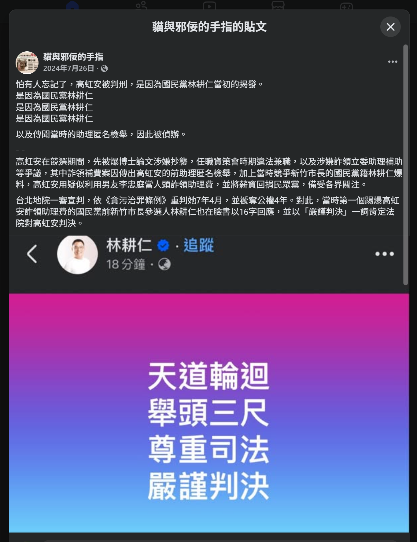 2024 年 7 月,高虹安一審被定罪之後,小草們在民眾黨的群組裡寫著: