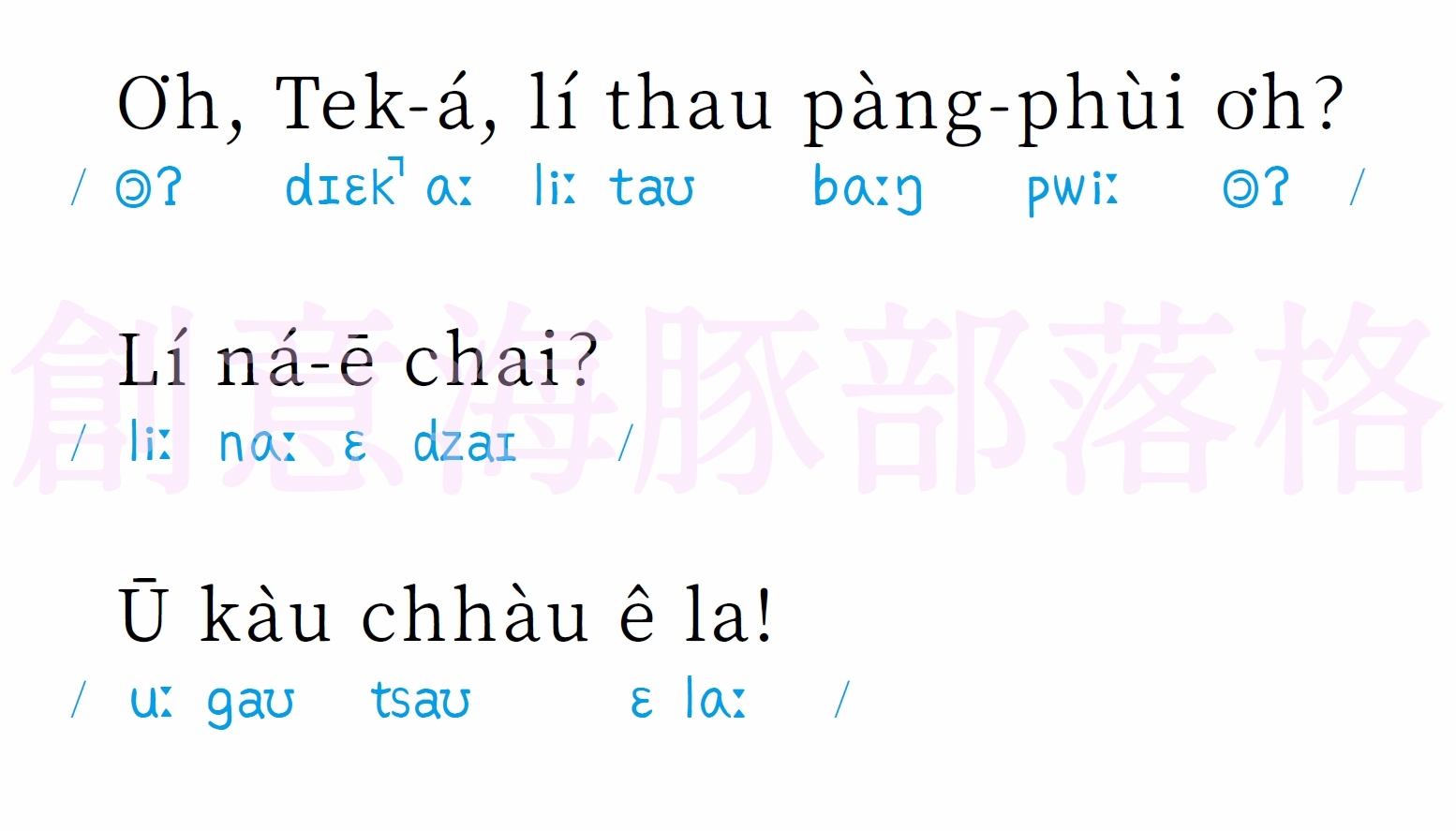 O͘ h, lí thau pàng-phùi o͘ h? (喔,你偷放屁喔?)