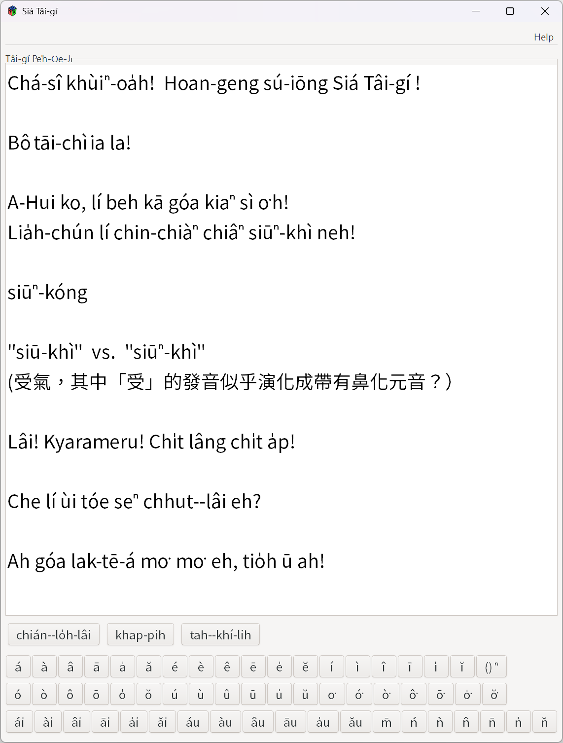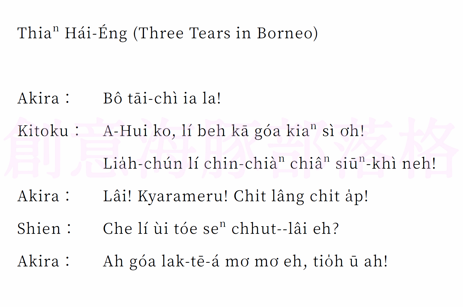 Well, 一如往常地,筆者使用自己所設計的 SiaTaigi 小程式,把這段對話敲進去後再拷貝到排版軟體做編輯。