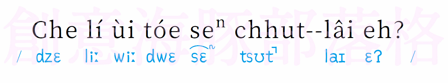 新海志遠:Che lí ùi tóe seⁿ chhut--lâi eh?