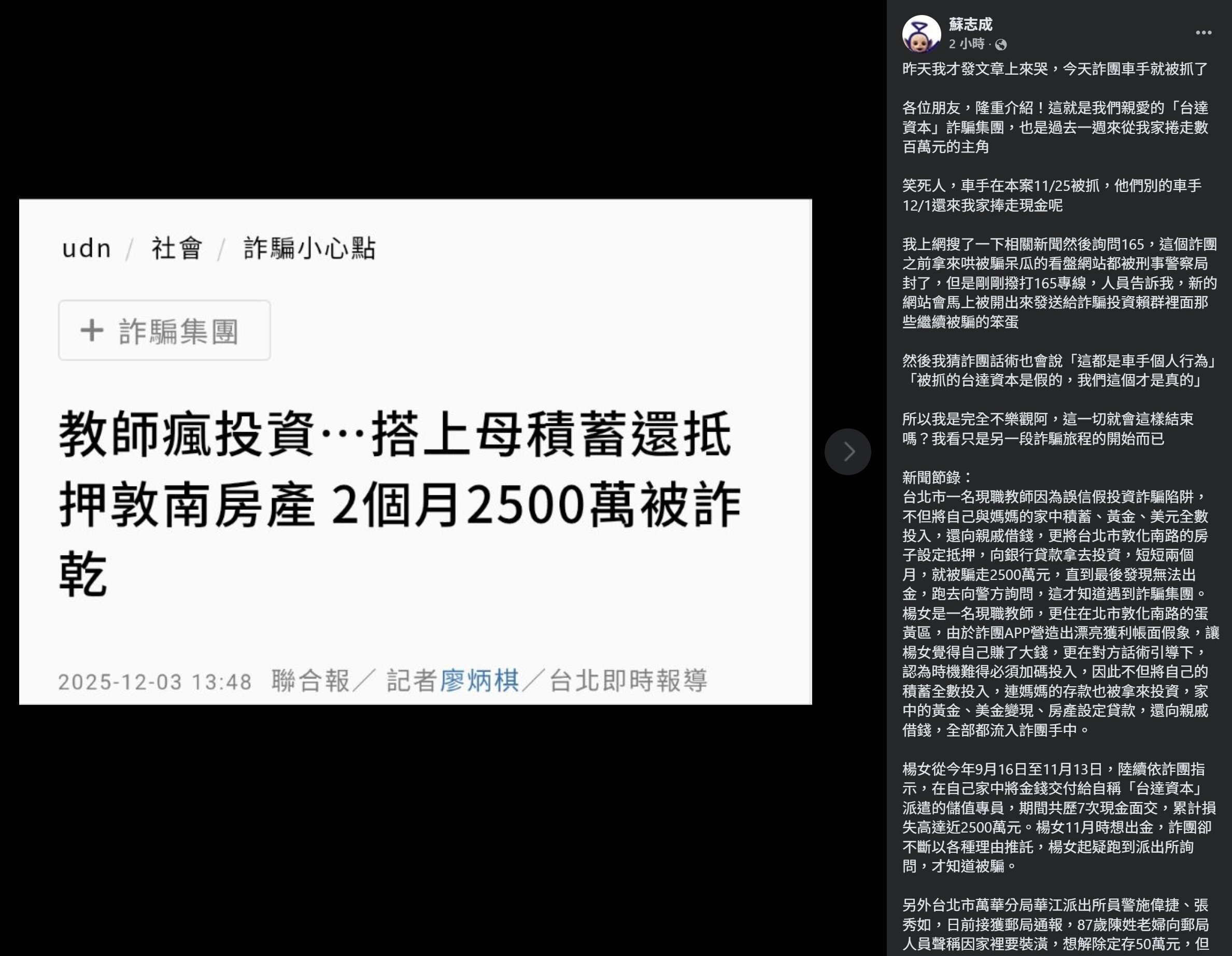 苦主說,今天的一則新聞是這家詐團的另一名受害者。
