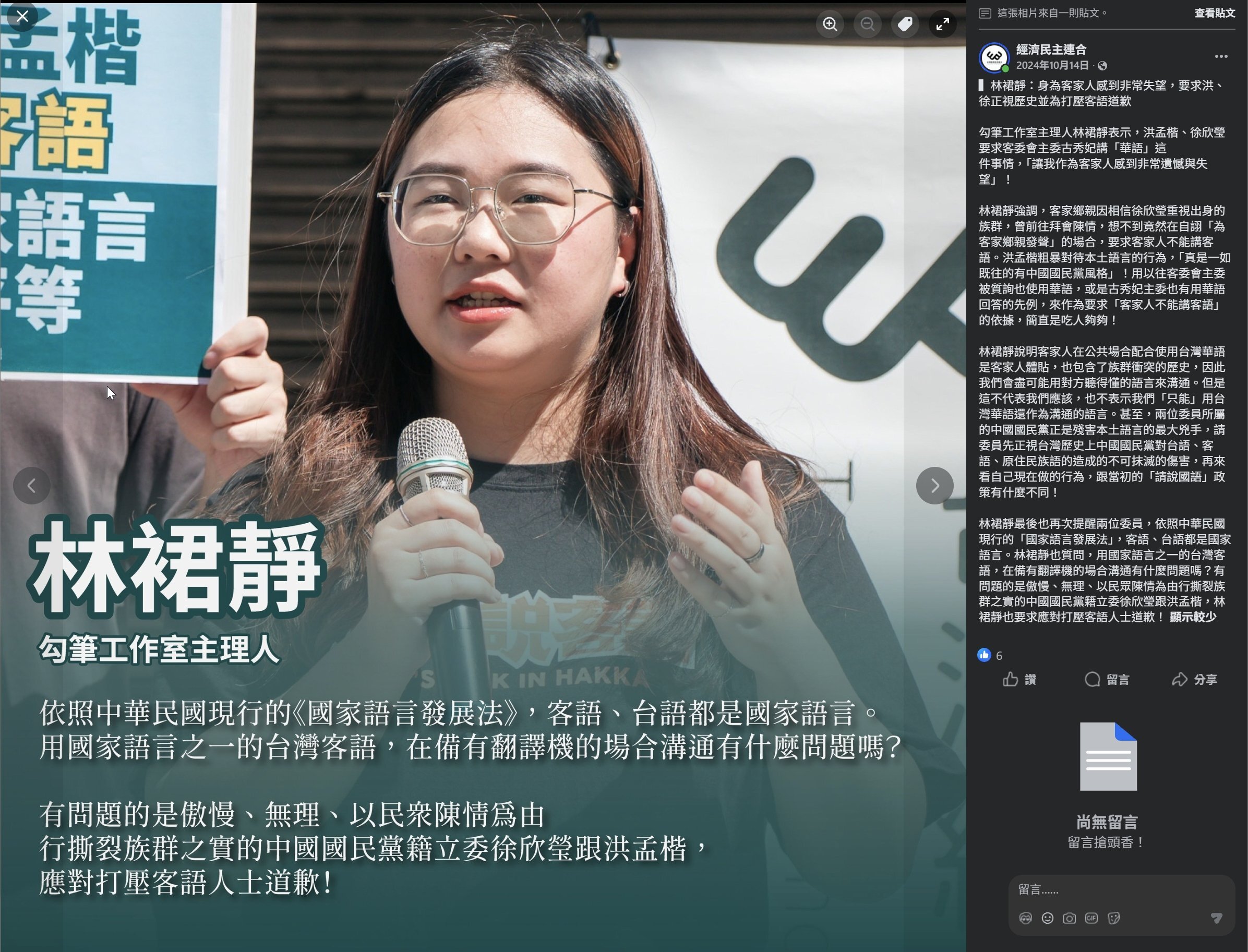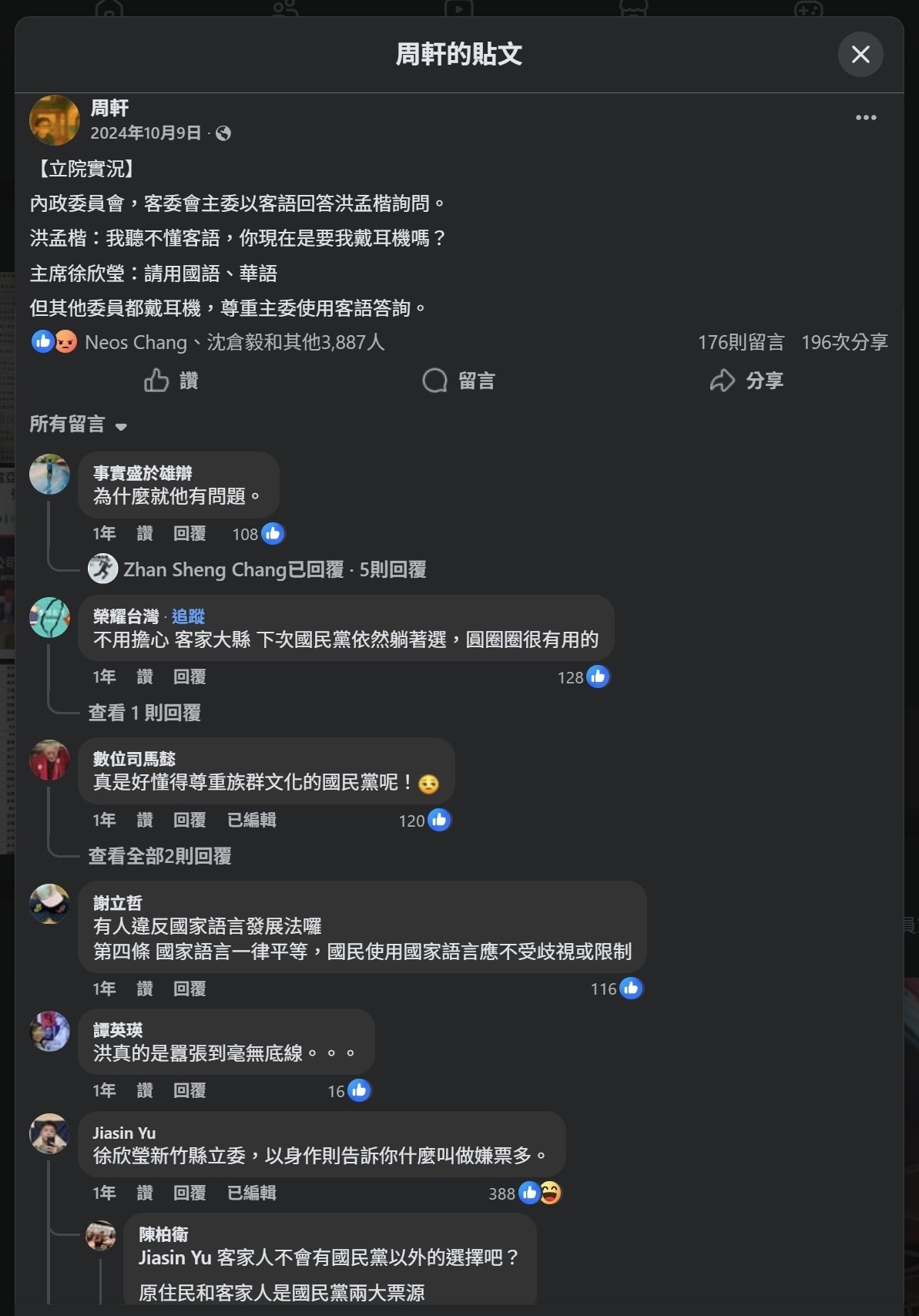 Well,雖然很多桃竹苗的客家人不在乎國民黨打壓客語,但一定也有部分桃竹苗的客家人會納悶,為何新竹縣國民黨的客家立委徐欣瑩要幫腔國民黨的洪孟楷打壓客語?為何要求客委會主委「古秀妃」把客語丟掉改講國語? Well,你們桃竹苗的客家人自己去問她。