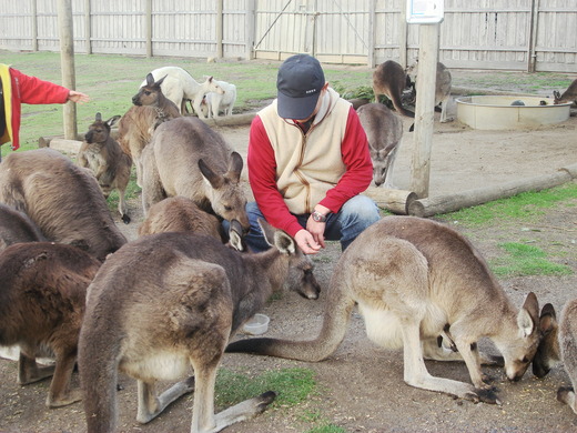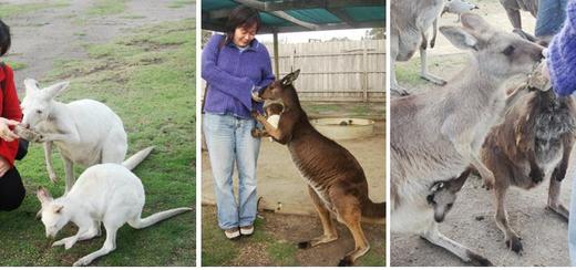 昨天去了Fauna Park野生動物園餵袋鼠,好多可愛的袋鼠爭相搶食,有一隻袋鼠肚袋裡還裝著一隻小袋鼠,我們都先餵牠,牠吃飽了,小袋鼠也就吃飽了。園裡還有幾隻白色的袋鼠,這倒第一次看見,當然也就優先餵這幾隻少數的白袋鼠囉。