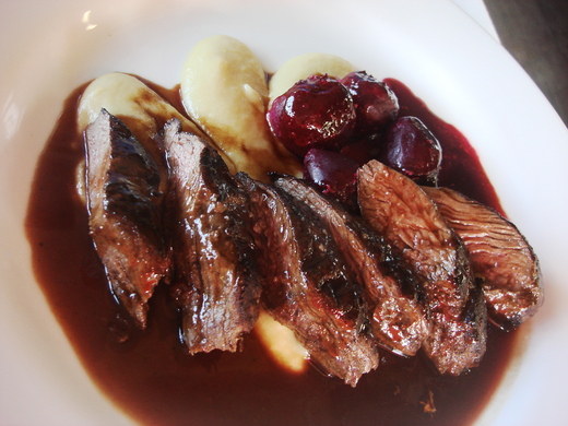 我一看菜單,竟有袋鼠肉,服務生告訴我袋鼠肉非常美味,有點像牛肉,但比牛肉可口。我問同伴們,有沒有人要試試袋鼠肉,結果,喲……唉…..聲此起彼落,沒有人願意吃袋鼠肉,老公還強調說:『妳如果要點袋鼠肉,待會別分給我吃。』;好友小林說:『唉喲!昨天才去餵了可愛的袋鼠,妳忍心吃牠們嗎?』 …… 站在我身旁的服務生,給了我一個鼓勵的眼神,結果,老公點牛排,小林點鴨肉,小林的老公點豬排,呵!呵!呵!我點了袋鼠肉。