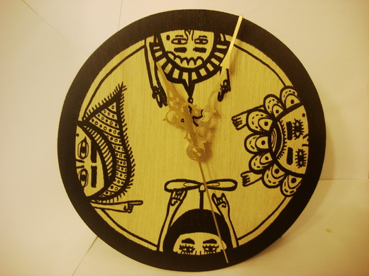 圓型時鐘,O’funkimigo 用的是木材的質料,一股腦,就畫了四個人物上去,裝上金色的指針,還不錯看喲!
