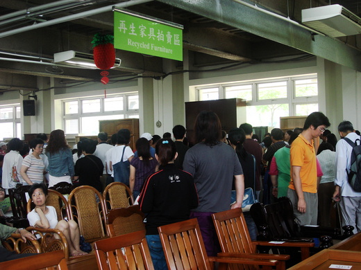 我原本以為應該不會有很多人想買再生傢俱吧,沒想到,一踏進拍賣會場,竟是人山人海,甚至有老外也來挖寶。