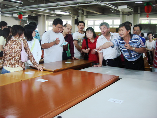 我知道的拍賣方式,就是佳士得 & 蘇富比那樣,把物品一件一件的拿上拍賣台,然後開始喊價。在內湖再生傢俱展示場,拍賣員是在會場裡鑽著走,只要有人要買,他就會過去幫你喊價拍賣。你能想像一堆人跟著拍賣員,在場裡不斷移動的景象嗎?!真熱鬧!