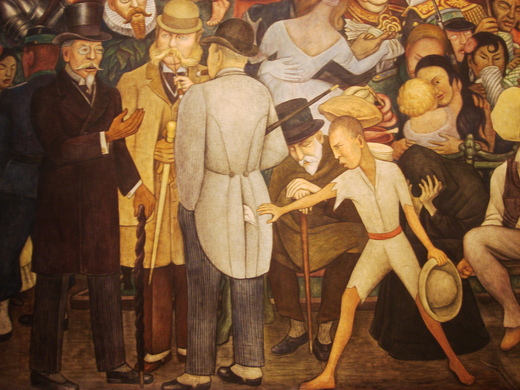 59. 革命工作者,他替Flores Magon來與人民對話,提倡革命主張。 里維拉用他自己的助手來作為畫他的模型。