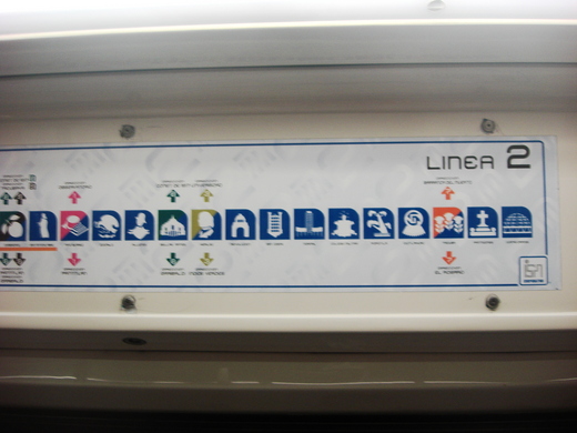 墨西哥的地鐵只用西班牙文,廣播也只有西班牙文一種。有一次我們搭地鐵時,播音器呱呱呱的說了一大串的西班牙文,我們正準備問旁邊的乘客時,地鐵刷的很快過站不停。原來是週末的晚上,大廣場上交通管制,所以地鐵不停車。唉!還好那天我們的目的地不是大廣場,否則就烏煞煞啦!跟墨西哥比起來,我們的捷運廣播要重複講四種語言,似乎又太多、太長了點。