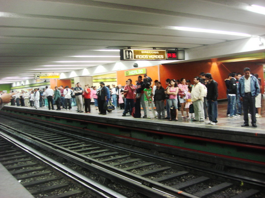 墨西哥市地鐵叫METRO,一共有11條線,自1969年9月啟用。地鐵全長202公里,一共有163個車站,有24個車站至少有二條線以上交匯,其方便性可想而知。更重要的是,搭地鐵票一次2披索﹝相當新台幣5元﹞,不管你去多遠的地方,要換幾次線,都是2披索,難怪墨西哥市的地鐵,平均每天都要載運400萬人次的乘客。