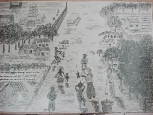 他才拎著水桶進廚房,他娘一見到他,氣得隨手抓起棍子就朝他深身上打。十歲的小傢伙,水桶往地上一放,趁他娘還沒抓牢他,一個轉身,撒腿就跑,待和他娘相隔十步,他才定住身子回頭,氣呼呼地吼著回話:
