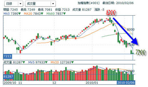 如上圖所示,從一月中到昨天,跌掉了超過一千點,再這樣下去,玩股票的人恐怕年不會太好過!