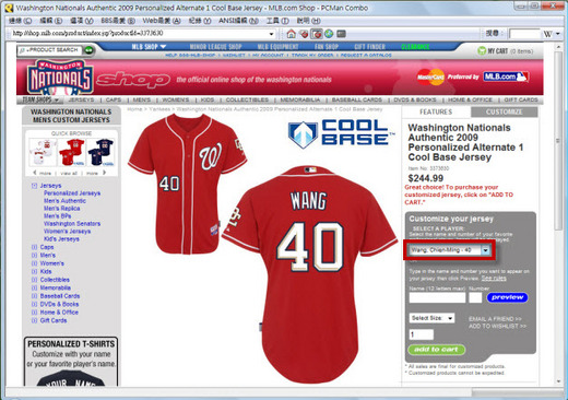 上圖是MLB國民隊官網中賣球衣的連結上的截圖,王建民的名字己經列名其中!