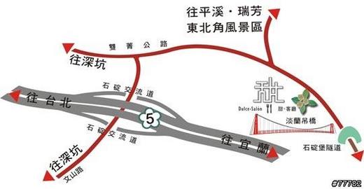 走106線縣道經深坑 到雙溪口即抵達甜。客廳 (位於雙溪口7-11前20公尺處、石碇堡隧道前)