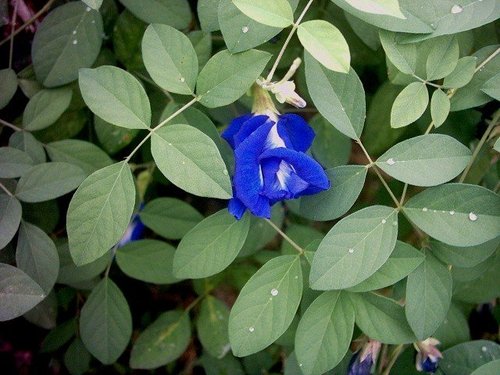 蝶豆有非常漂亮的花,尤其特大的藍紫色旗瓣,喉部深黃,更加耀眼動人。