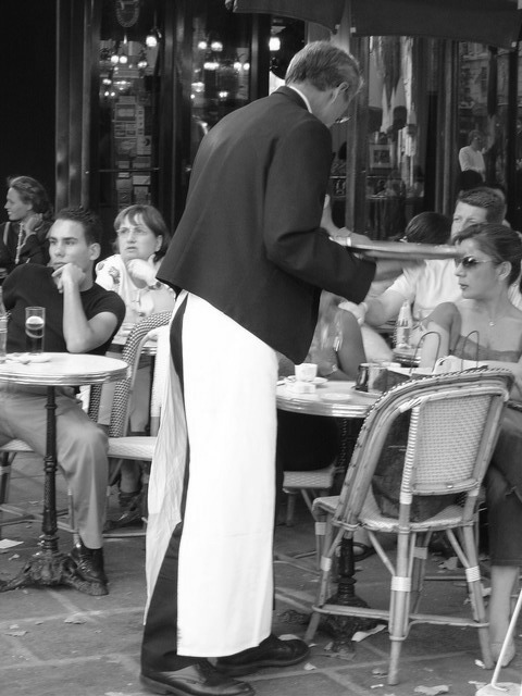 旅遊書上說咖啡分三個價,吧台最便宜,桌次居次,路邊看風景喝咖啡聊是非是最貴的!但我著實想不透,夏天的巴黎,路邊空氣沒多好,我在的那幾天還陰陰的,沒陽光時空氣裡飄著一絲涼意。更重要的是,兩家有名的咖啡店﹝花神、雙叟﹞都不在塞納河邊啊!
