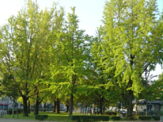 銀杏樹的葉在日光下發光,彩色的菫花紅得幾乎要灼傷眼睛。